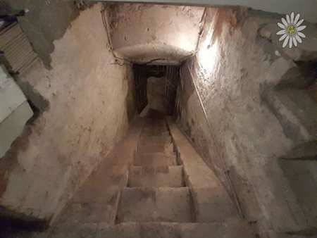 ורחצה, מרתף עם מערה היסטורית וכניסה לדירה בקומה העליונה באמצעות גרם מדרגות