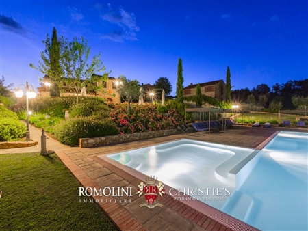 על הגבעות של האזור הכפרי של טוסקנה, במחוז ארצו, אחוזה נהדרת של 850 דונמים הכוללת 3 כפרים המשמשים לתיירות חקלאית, נופש, כרם קיאנטי ומטע זיתים.