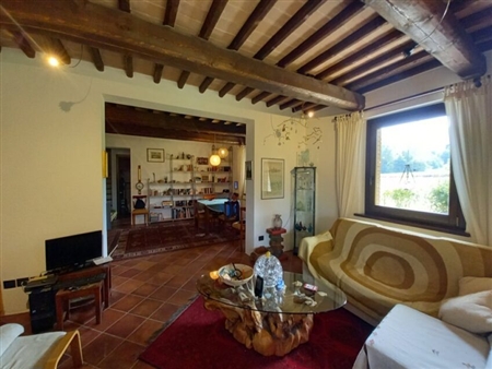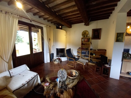 בבית תקרות עם קורות עץ ואריחי טרקוטה,